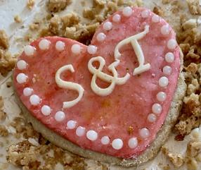 say something sweet with a cookie. vanilla cookie with a hint of almond topped with white modeling chocolate. can be made into shapes (hearts, pumpkin, xmas tree, ornament and shamrock). Ingredients: butter, turbinado, GF flour, eggs. White modeling Chocolate (contains milk, soy and may contain tree nuts) 12 in ea. order. call for price